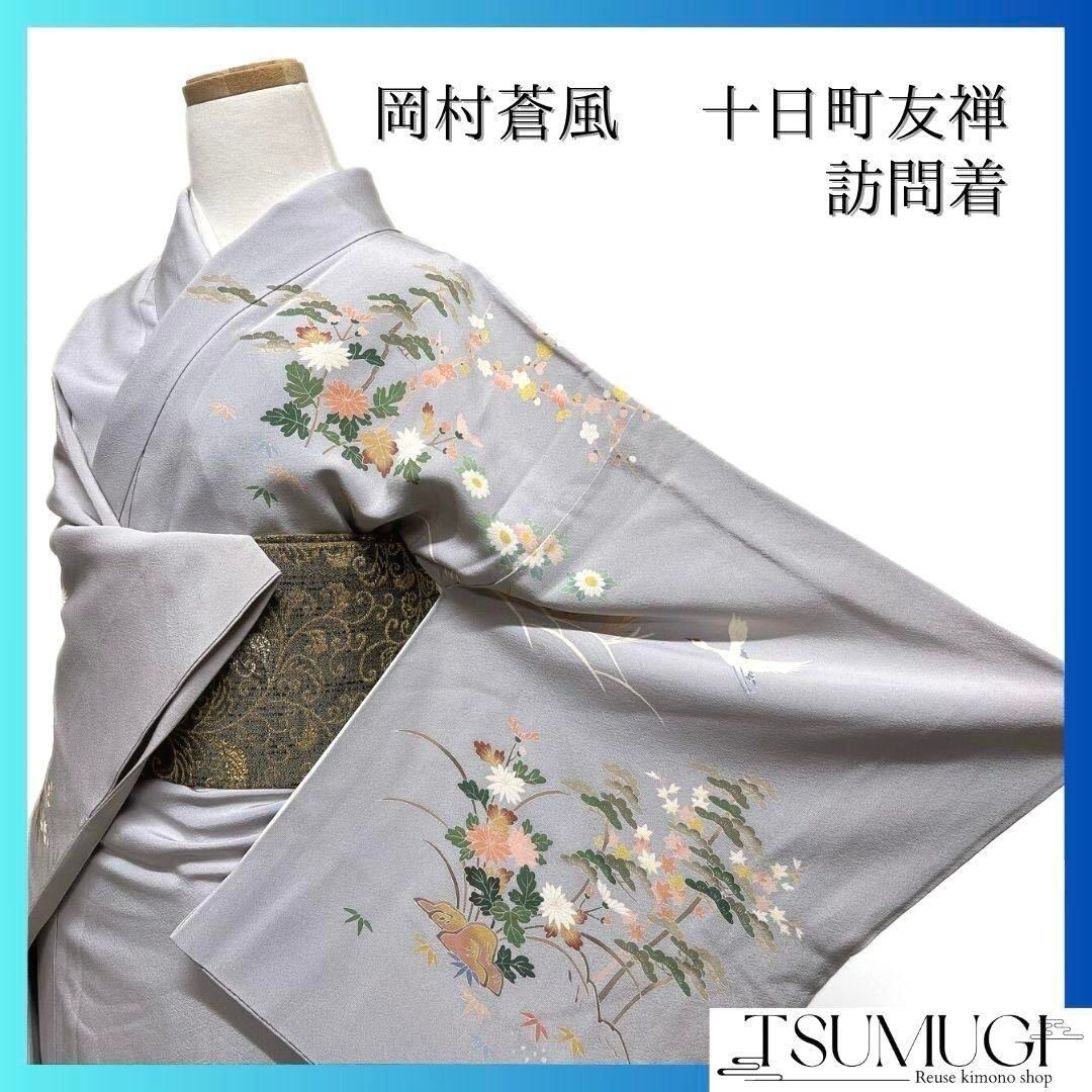 松竹梅や鶴、水引、花模様が加賀友禅を思わせる十日町友禅で描かれた1着です。