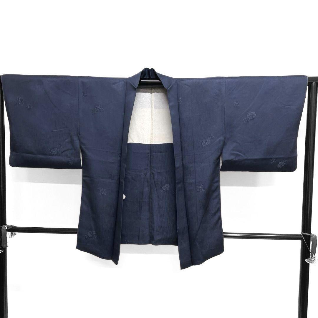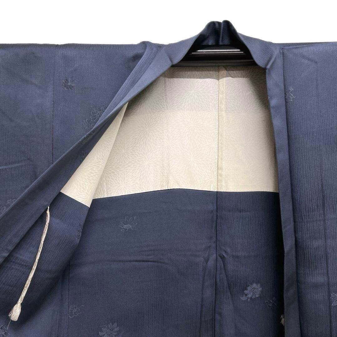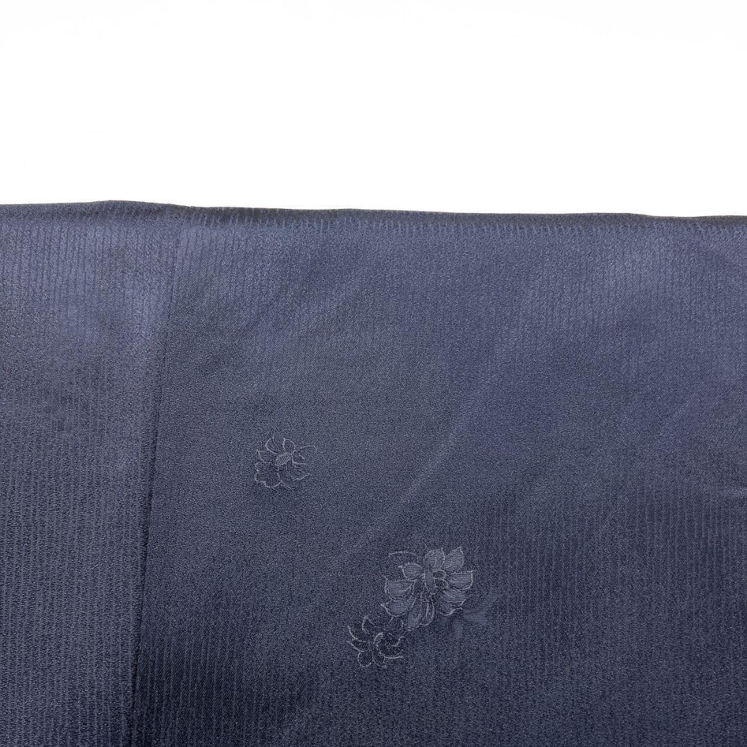 深いくすみブルーに可愛らしい繊細な花模様が散りばめられたデザインの1着です。