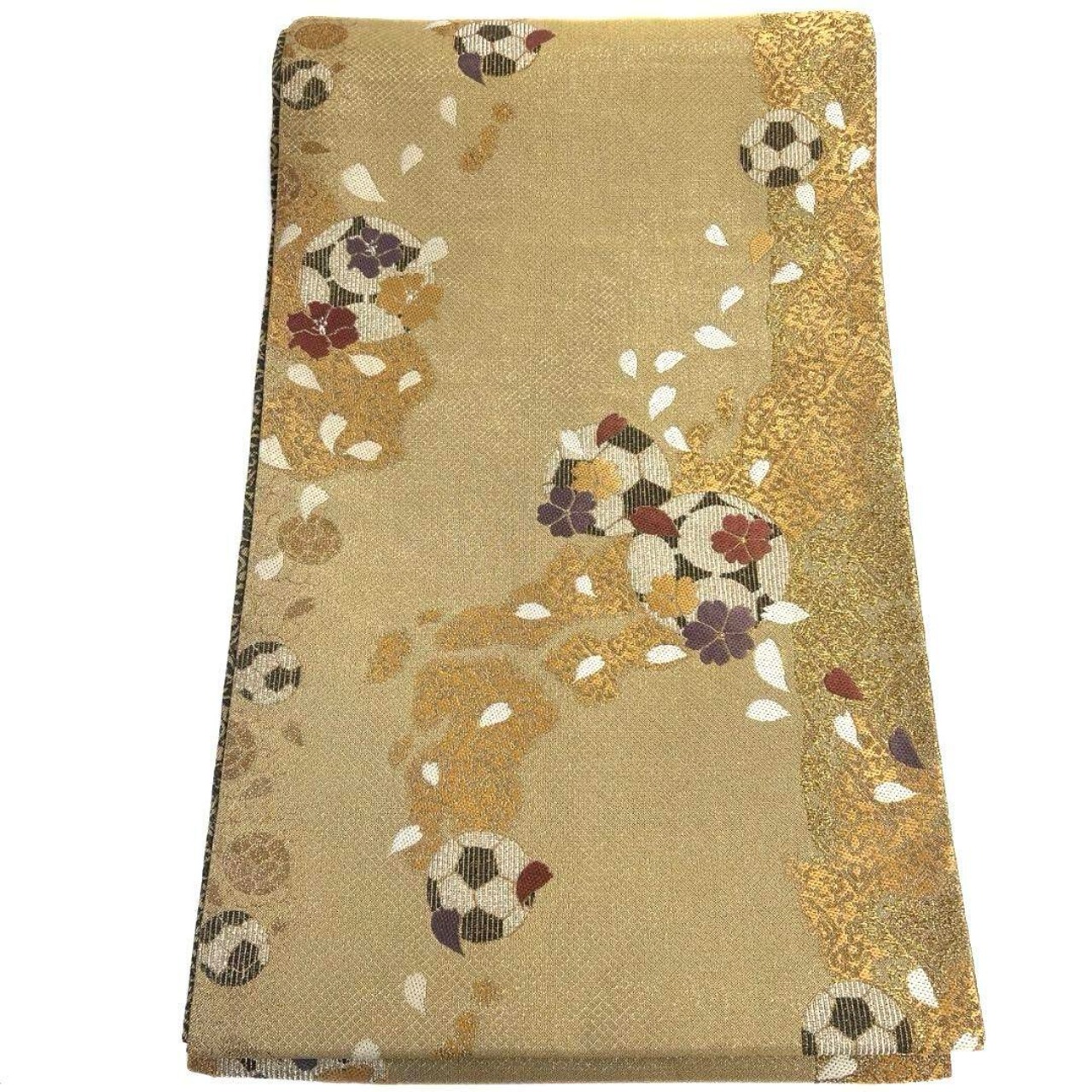 全体にサッカーボールや大陸、和を象徴する桜花模様が金糸を交え織り出された1着です。