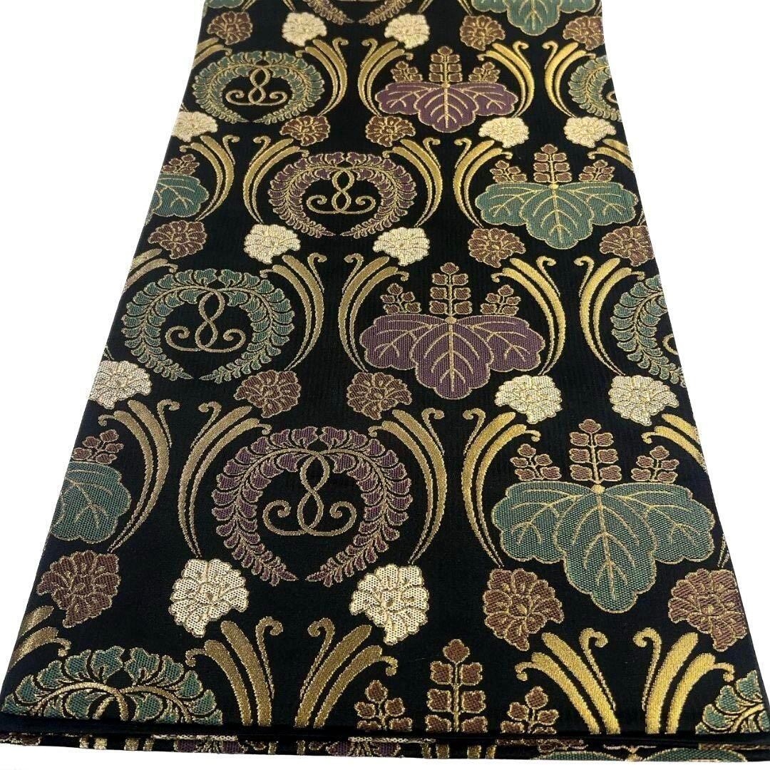 伝統工芸士、小笹宏風の桐紋や桐の花、下がり藤が織り出された袋帯です。