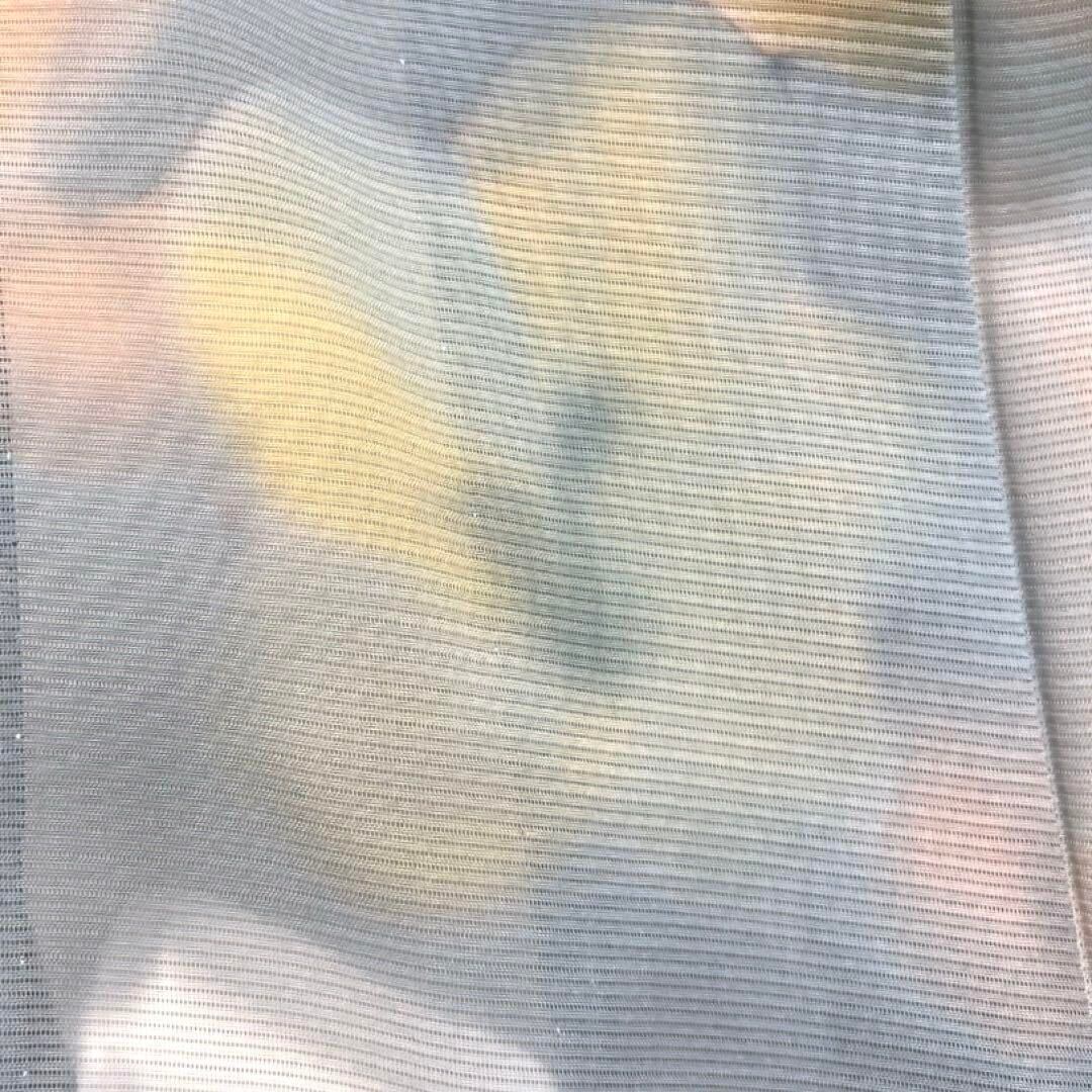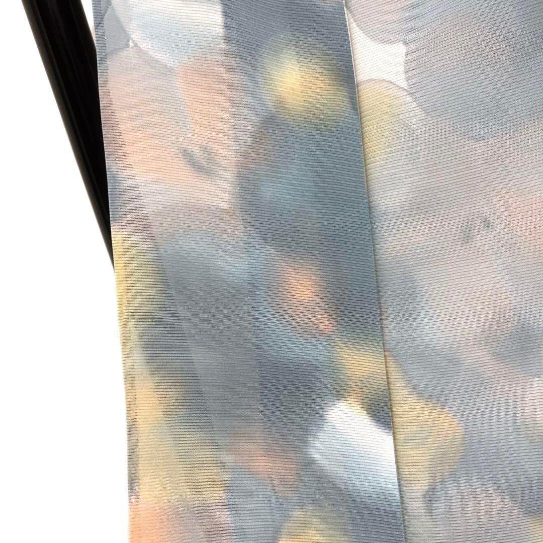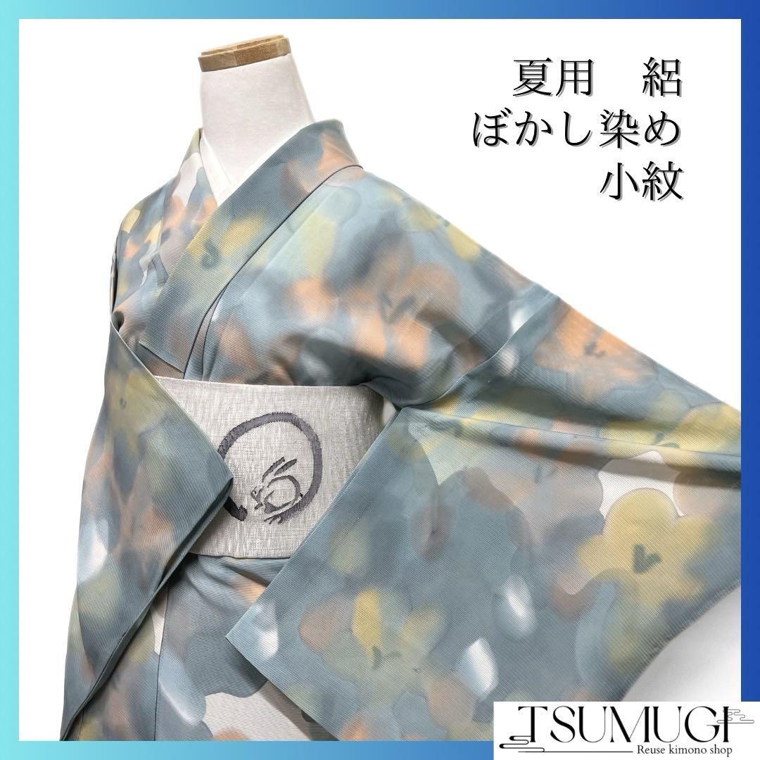 絽の字にぼかし染めで描かれたくすみカラーの抽象的な花模様がお洒落なデザインの一着です。