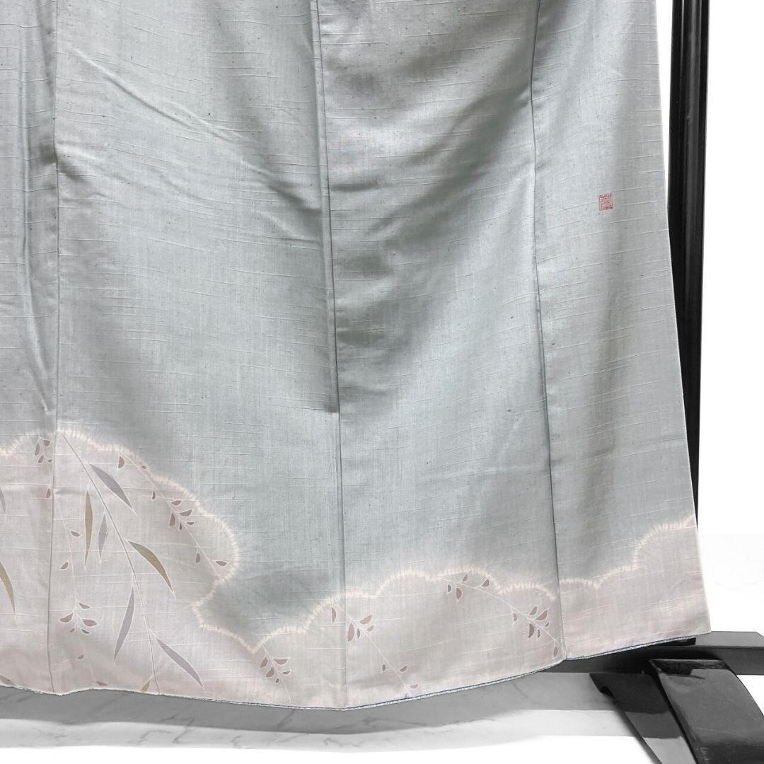 紬地に絞りがあしらわれた雲模様や枝垂れ柳、花模様が描かれた訪問着です。