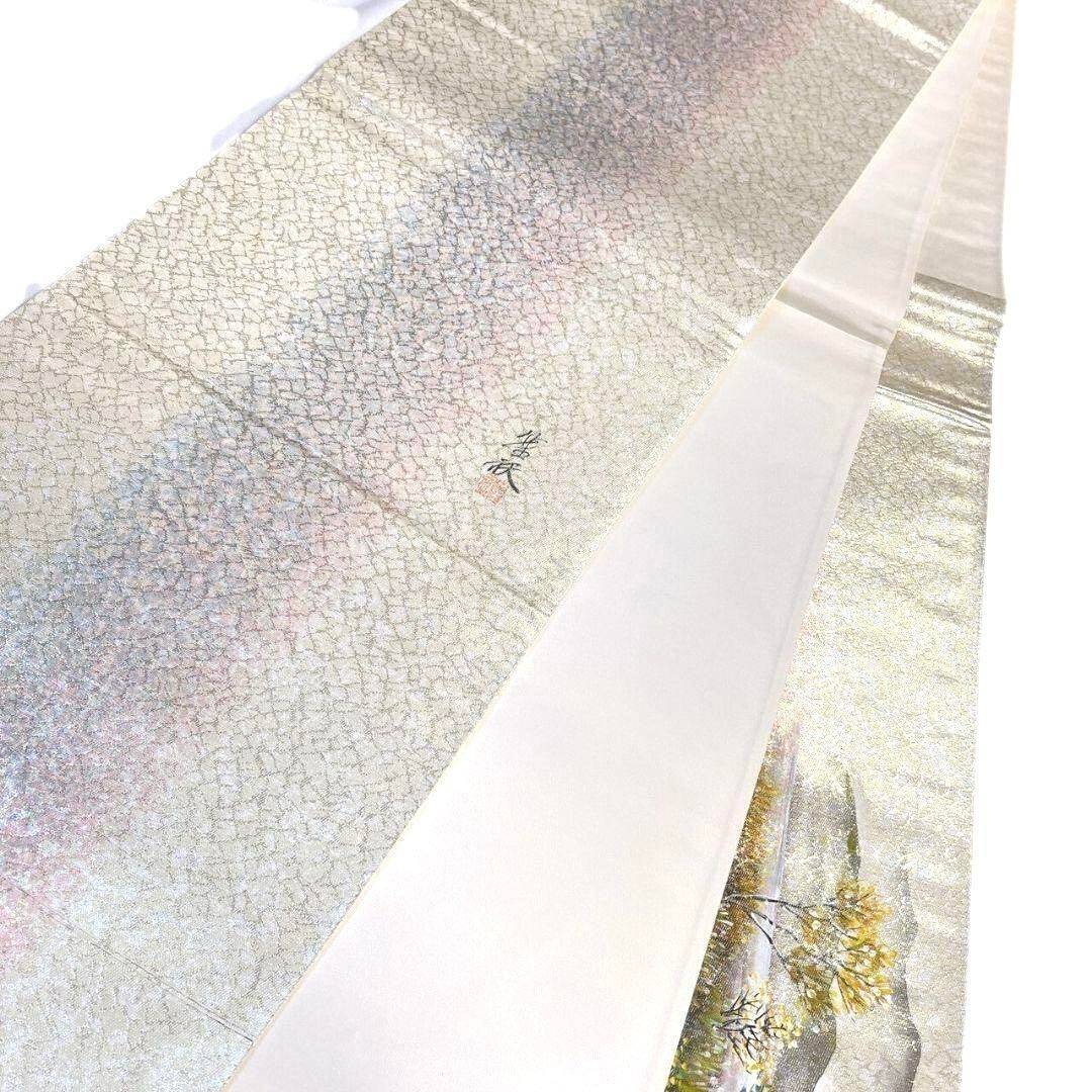 細やかな水波紋のように織り出された全体に金糸が細やかに煌めく1着です。