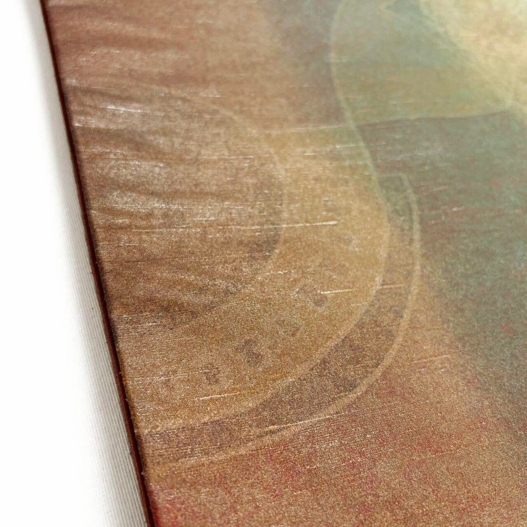 牛首紬に抽象模様と縦縞が織り出された袋帯です。