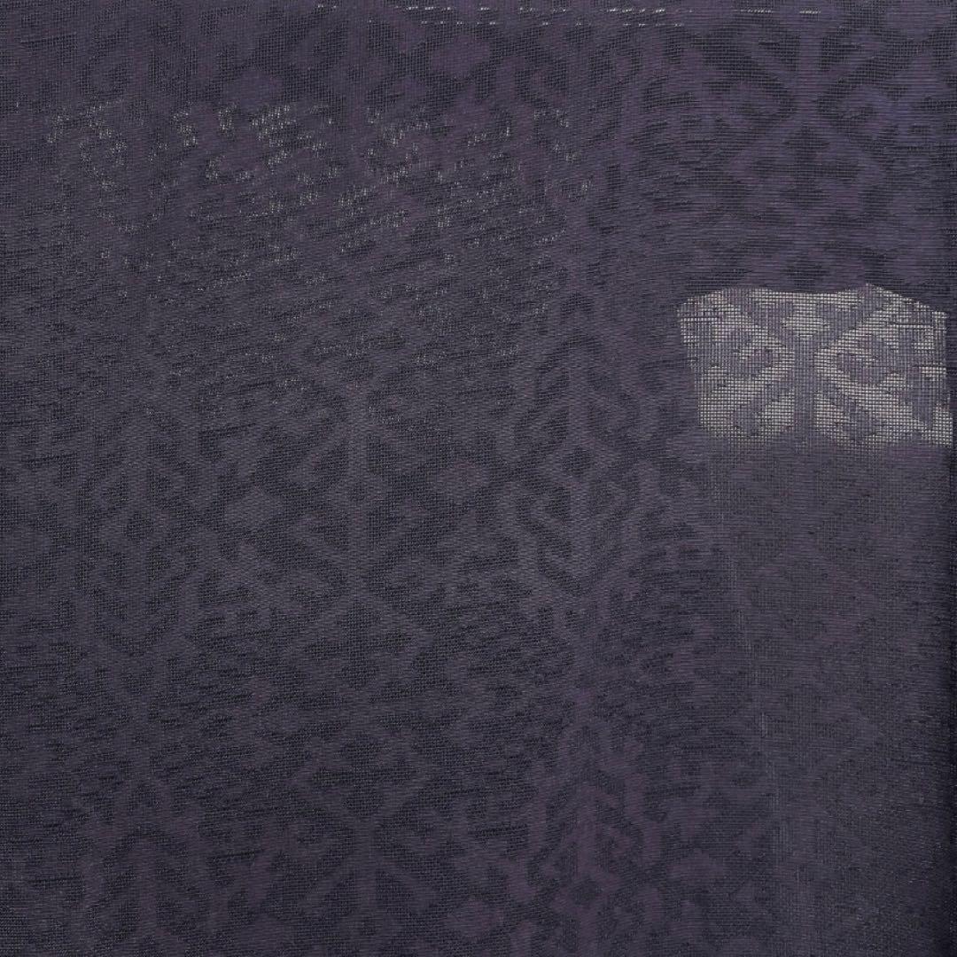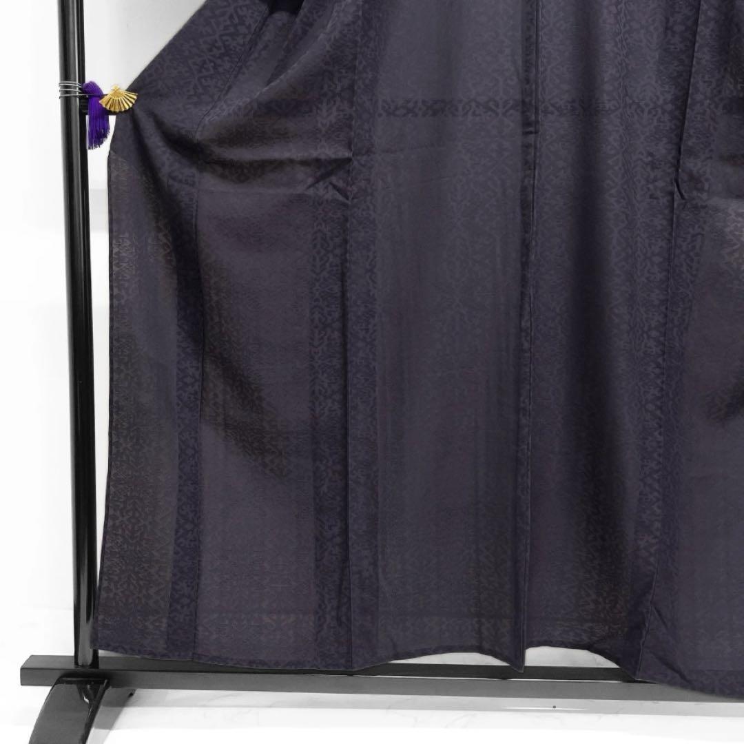 深いパープルの地に紋紗で織られた幾何学的な抽象模様がお洒落なデザインの一着です。