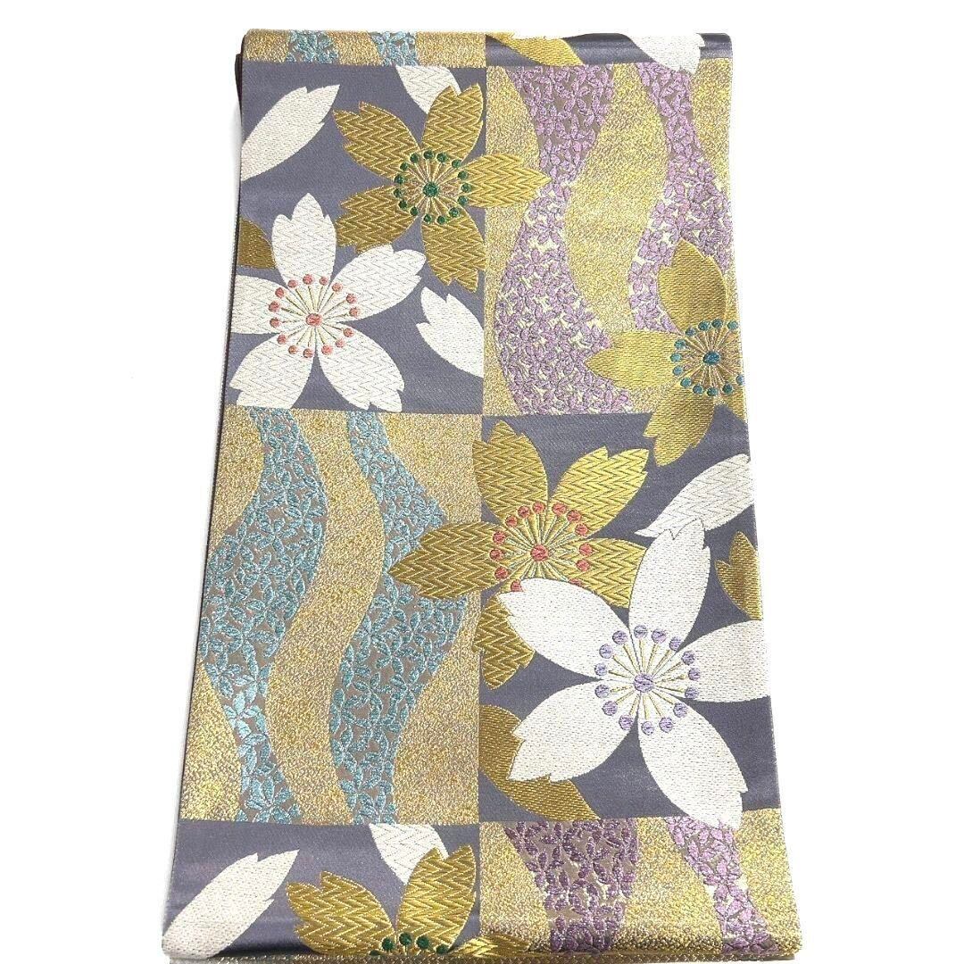 変わり市松に唐織で桜花模様や小花流線が織り出された振袖帯です。