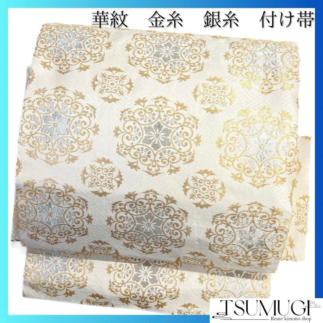 白地の紗綾形地紋地に映える金糸と銀糸を交えて織られた華紋の文様が目を惹く華やかなデザインの一着です。