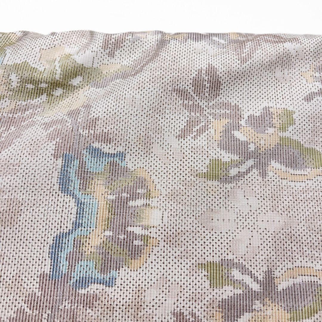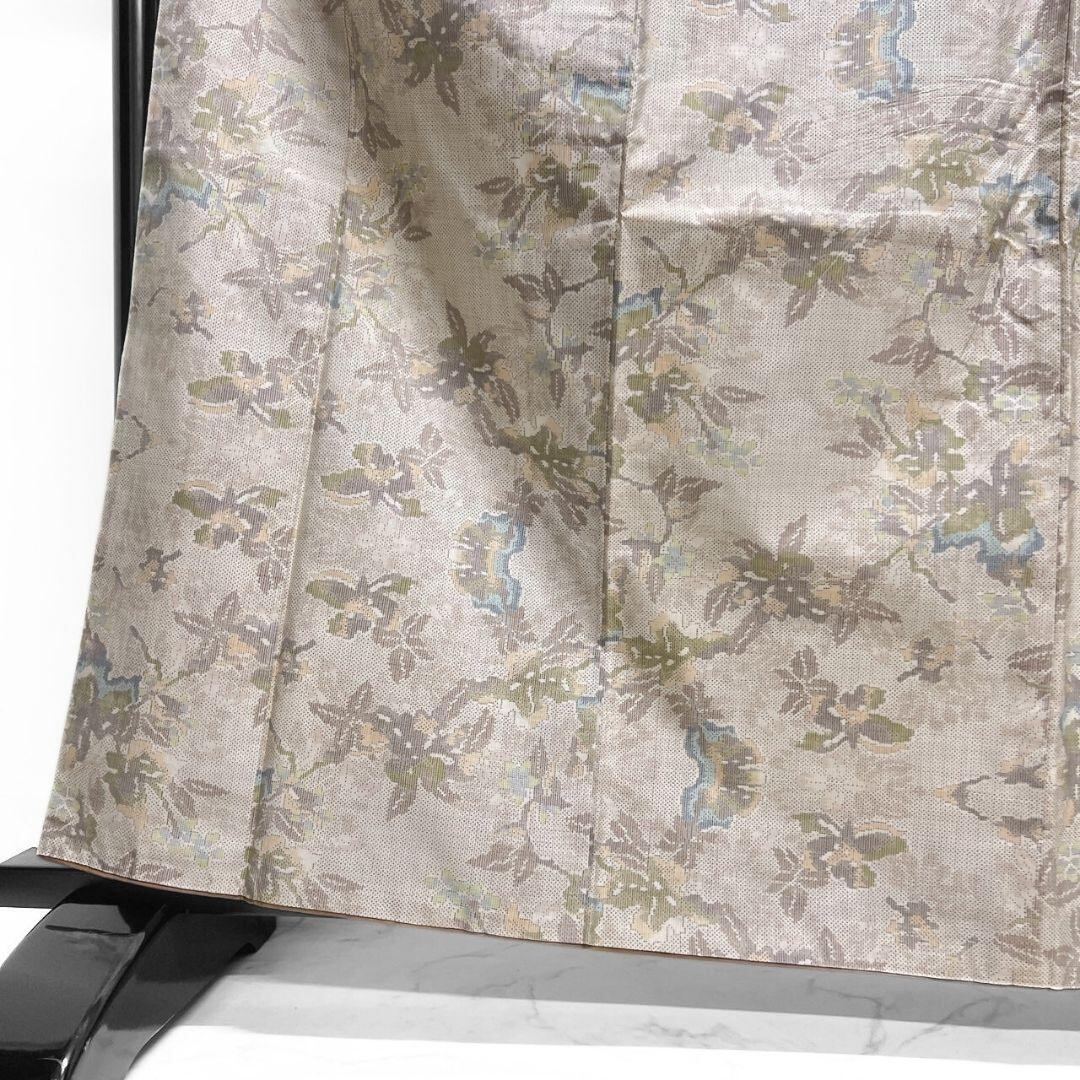 大島紬の花模様が織り出されたベージュカラーの小紋です。