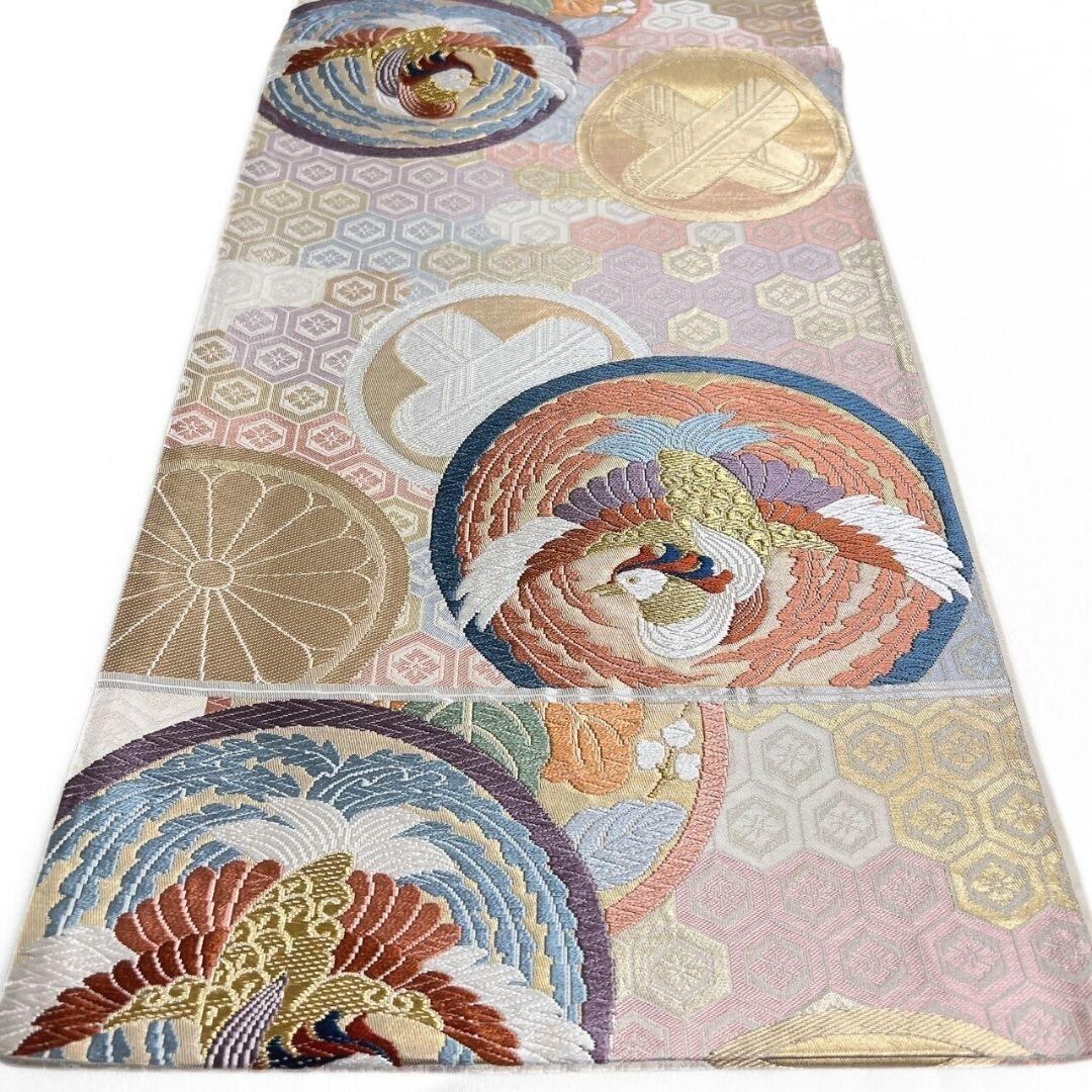 唐織で鳳凰紋や桐紋、菊花紋が織り出された袋帯です。
