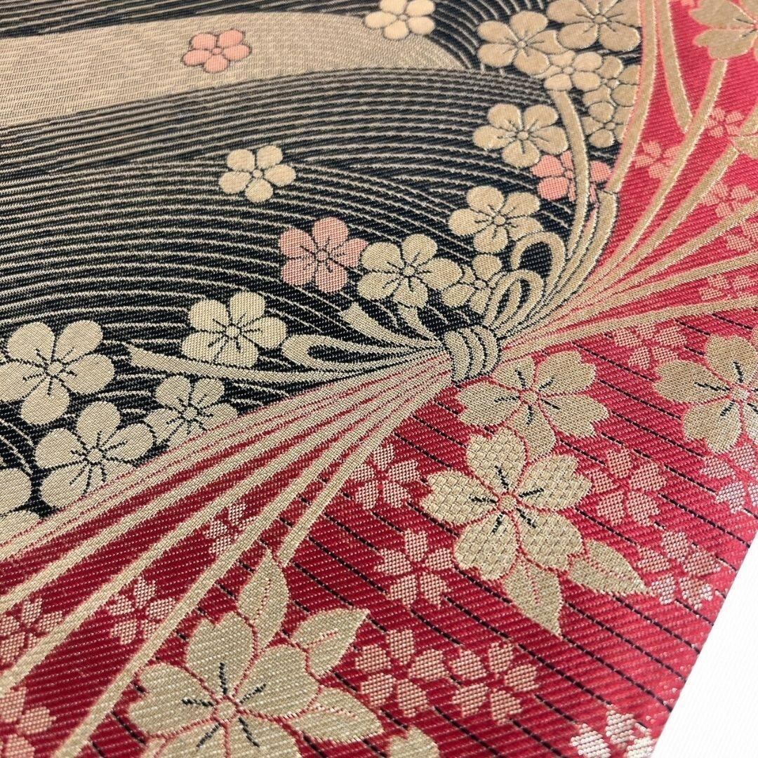 熨斗や流線、桜花模様が織り出された袋帯です。