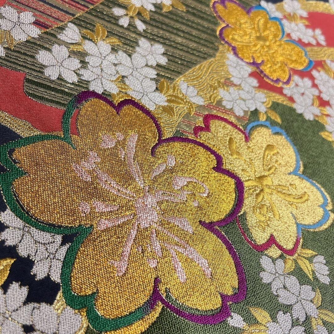 桜花模様に花影、斜線が織り出された振袖帯です。