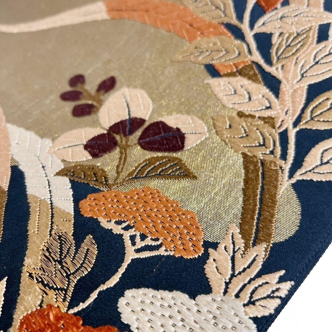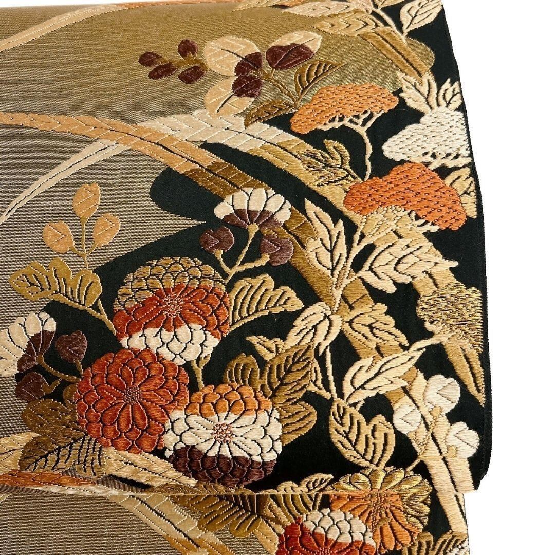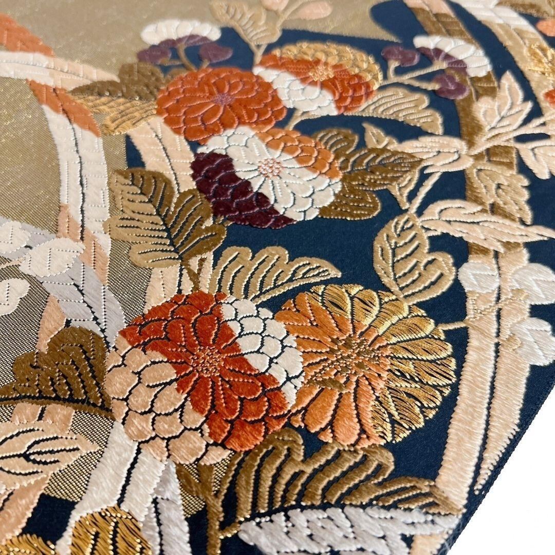 未着用、唐織で萩や菊花、桔梗が織り出された袋帯です。