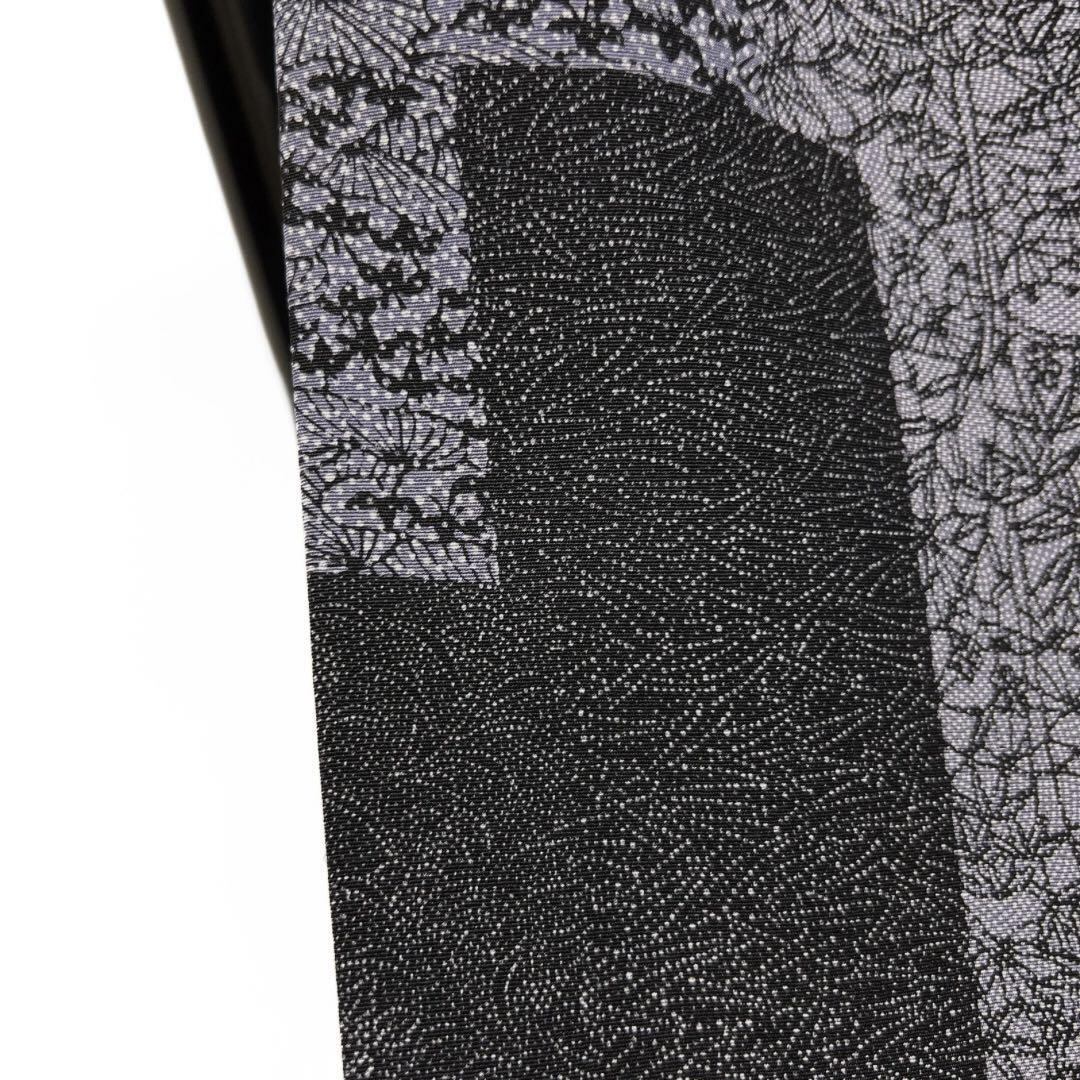 黒地に描かれた短冊の文様に細やかに描かれた様々な江戸小紋の文様が見ていて飽きのこないお洒落なデザインの一着です。