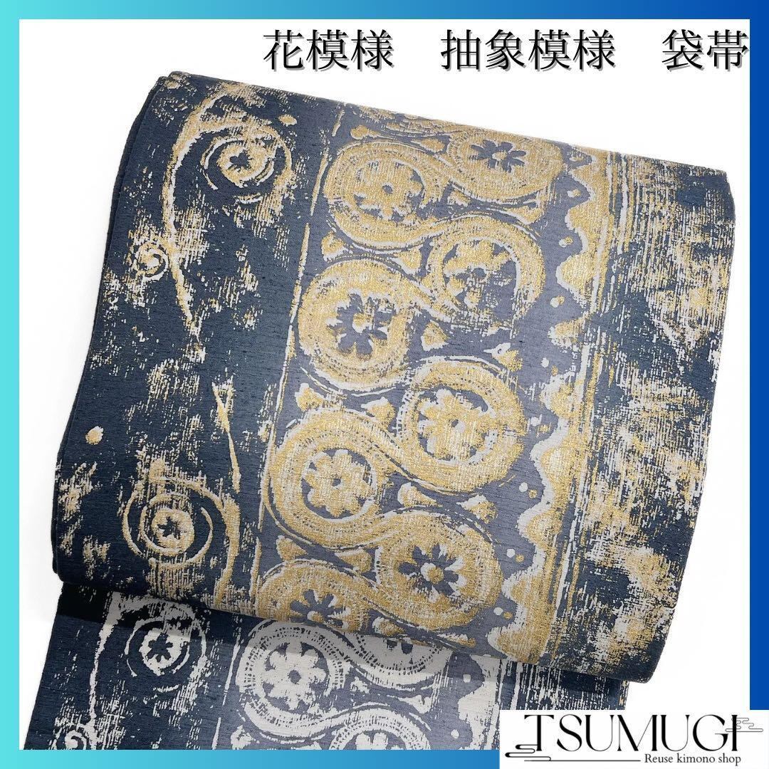 紬の抽象模様と花模様の袋帯です。