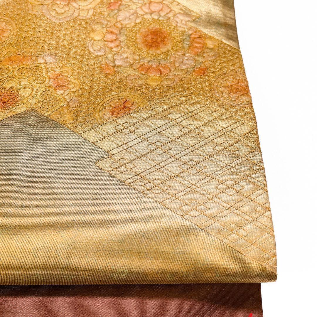 スワトウ刺繍と刺繍があしらわれた花模様の袋帯です。