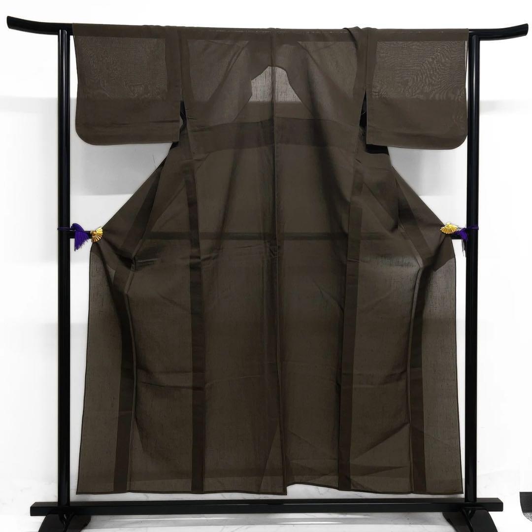 深いくすみブラウンの紗紬の地が上品でお洒落な雰囲気の一着です。