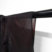 黒地に裏地が赤の二重紗で織られた幾何学的な抽象模様がお洒落なデザインの一着です。