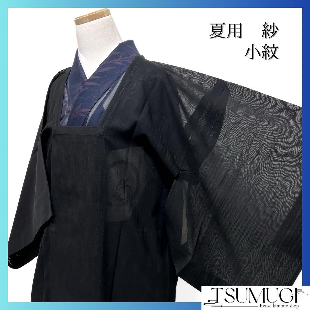 黒地に二重紗で織られたよろけ縦縞の文様がお洒落なデザインの一着です。