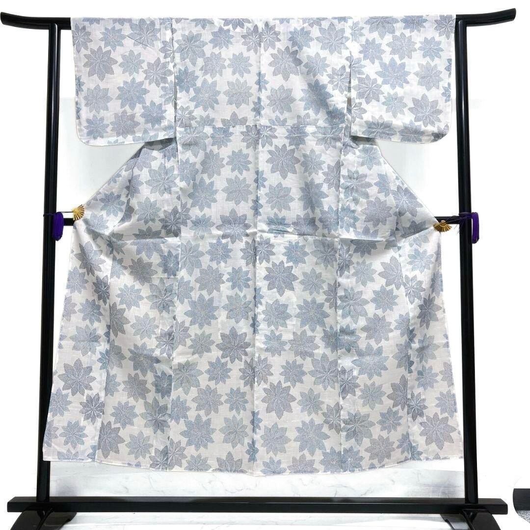 夏用、紗紬の白地に花模様が織り出された小紋です。