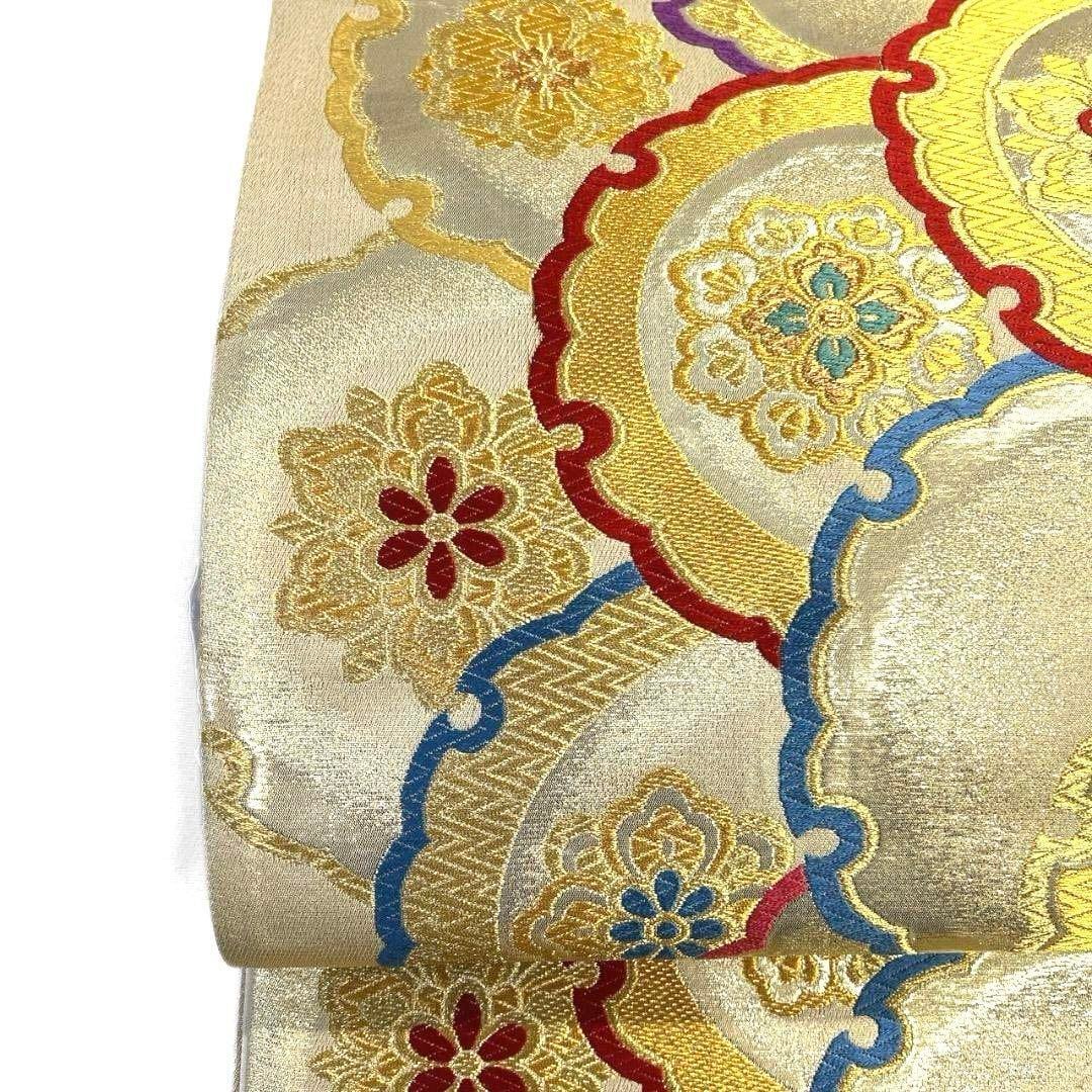 唐織で雪輪や花紋が織り出された袋帯です。