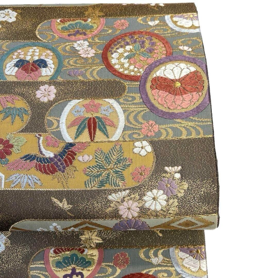 唐織でヱ霞や桐紋、菊花紋、松竹梅が織り出された袋帯です。