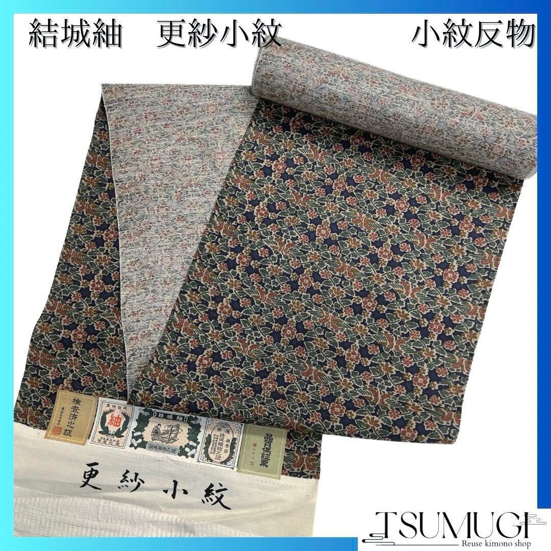 ネイビーの地に立涌に鳥と花模様の更紗文様が描かれたお洒落なデザインの一着です。