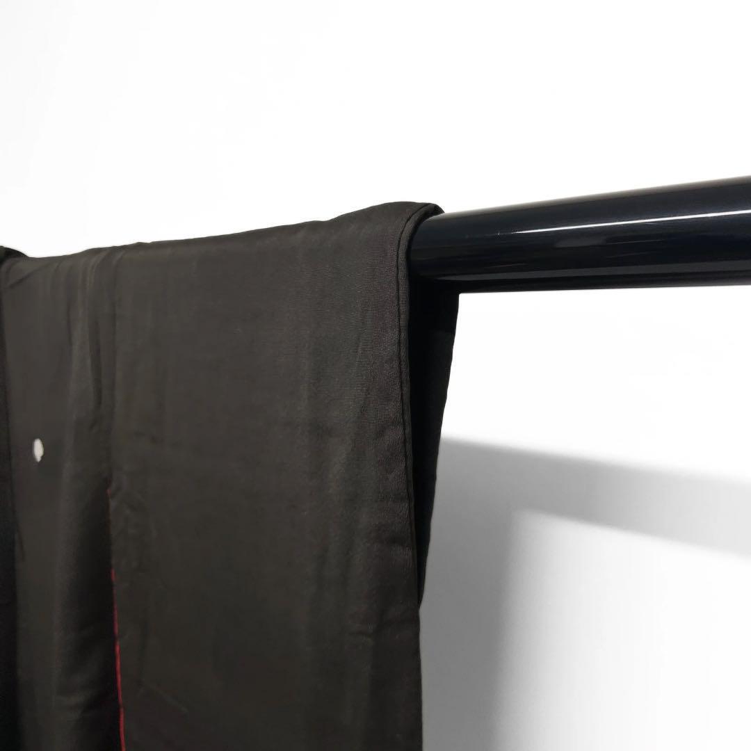 黒地に経年による色褪せと上前、袖、襟、裏地に汚れがございます。