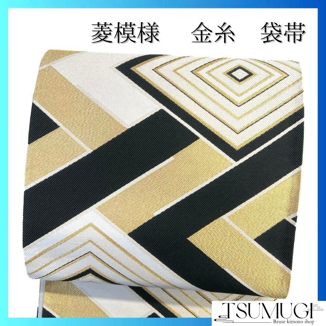 モノトーンのお色味に金糸がふんだんに使用された菱模様がモードなデザインの1着です。