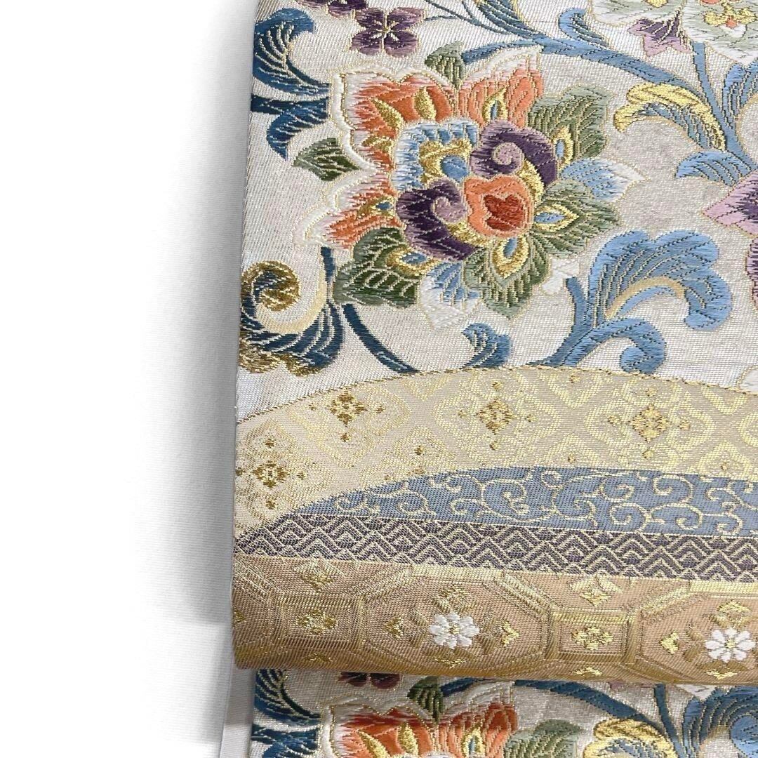 唐織で彩艶唐花文や蜀江紋が織り出された袋帯です。