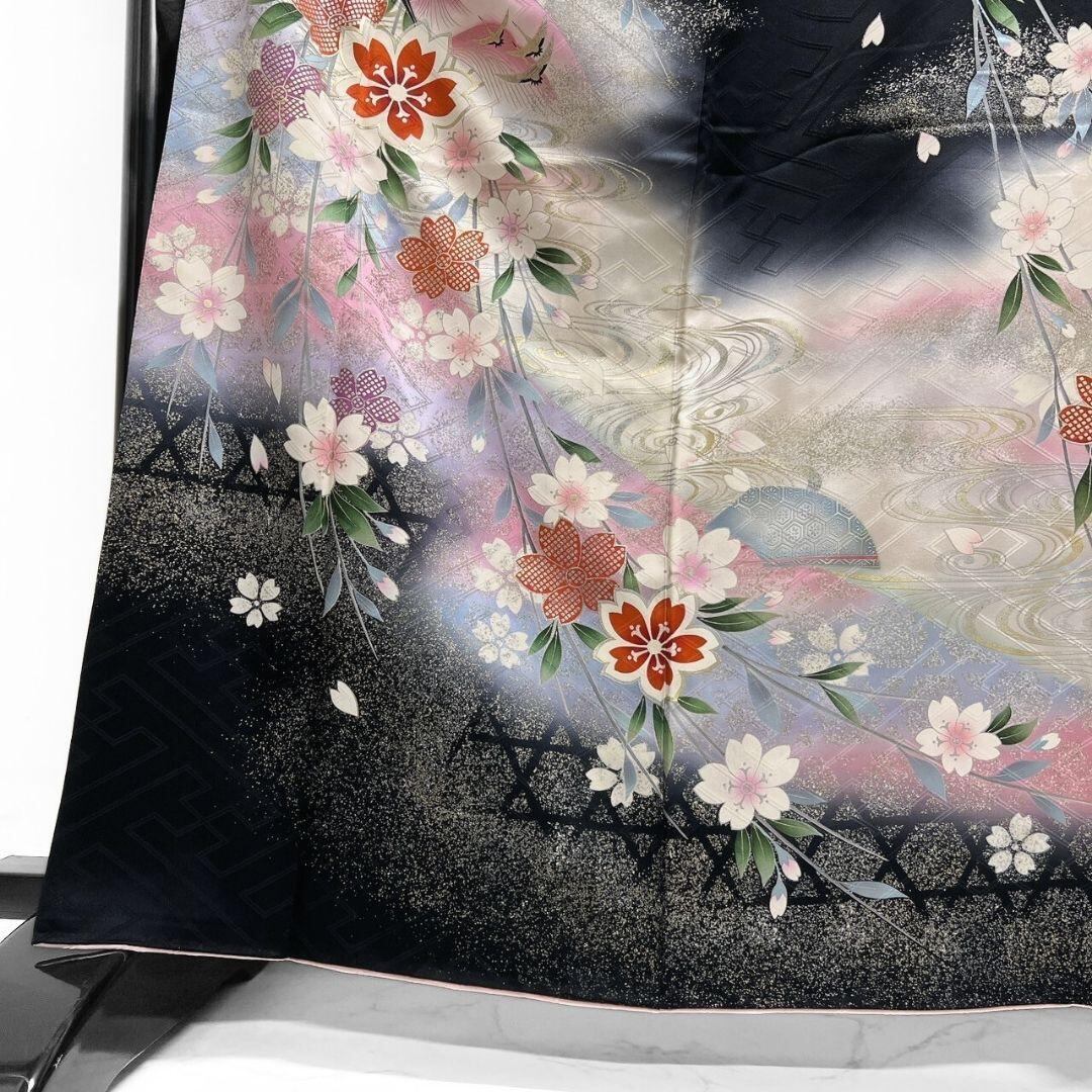 枝垂れ桜や美しい観世水が全体にデザインされたモードな雰囲気の1着です。