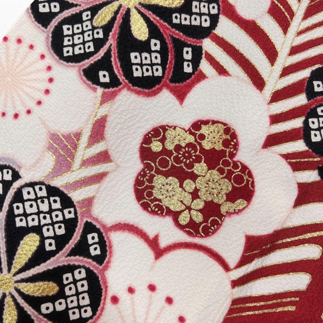 紅白の美しいお色味に鹿の子や花模様が繊細なタッチで描かれた1着です。