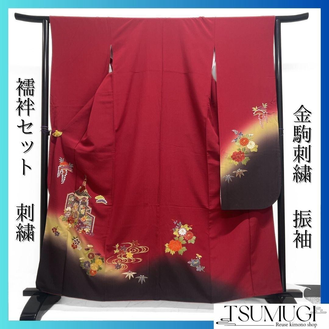 金駒刺繍や刺繍があしらわれた襦袢セットの振袖です。