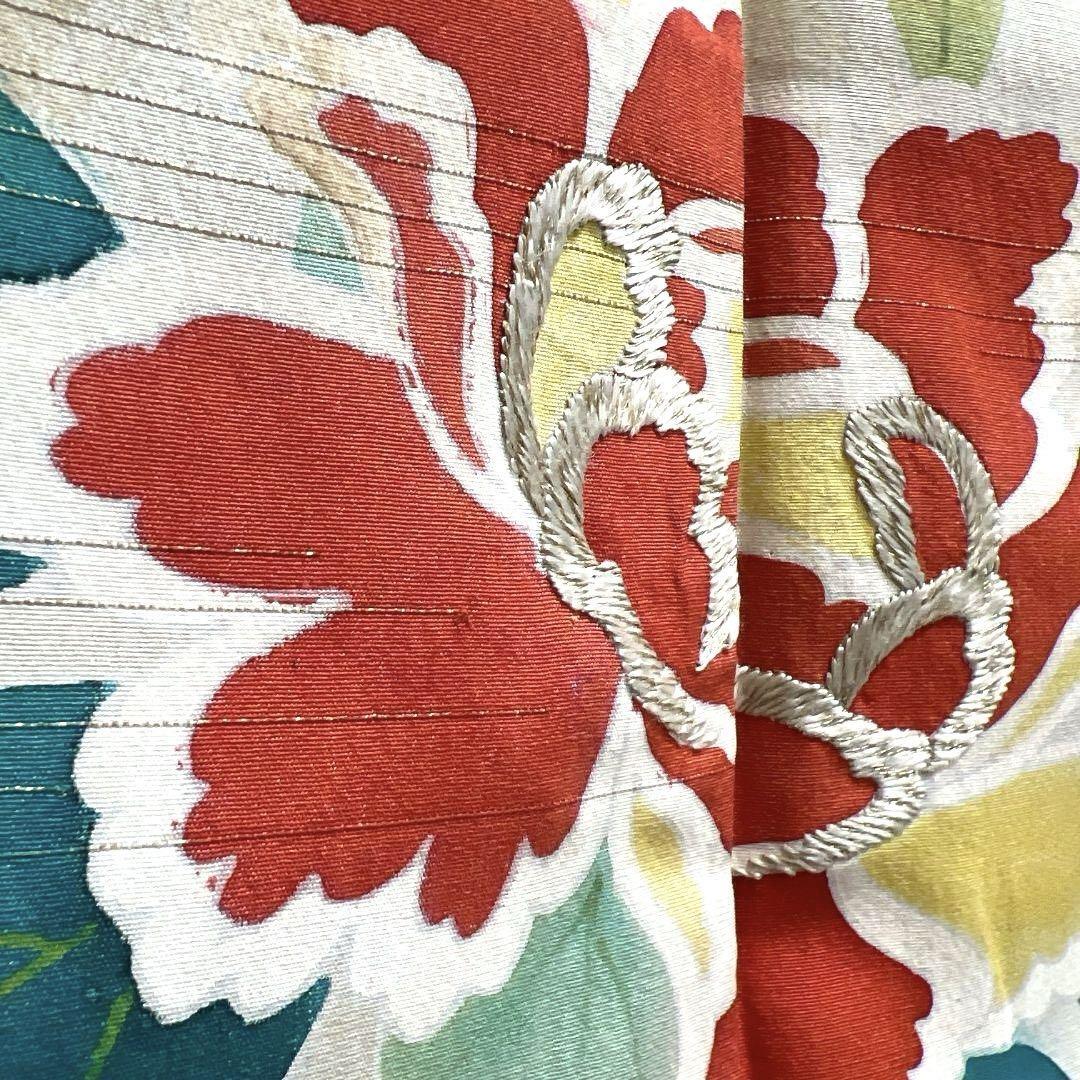 牡丹や桜、桔梗や橘がデザインされた華やかな一着です。