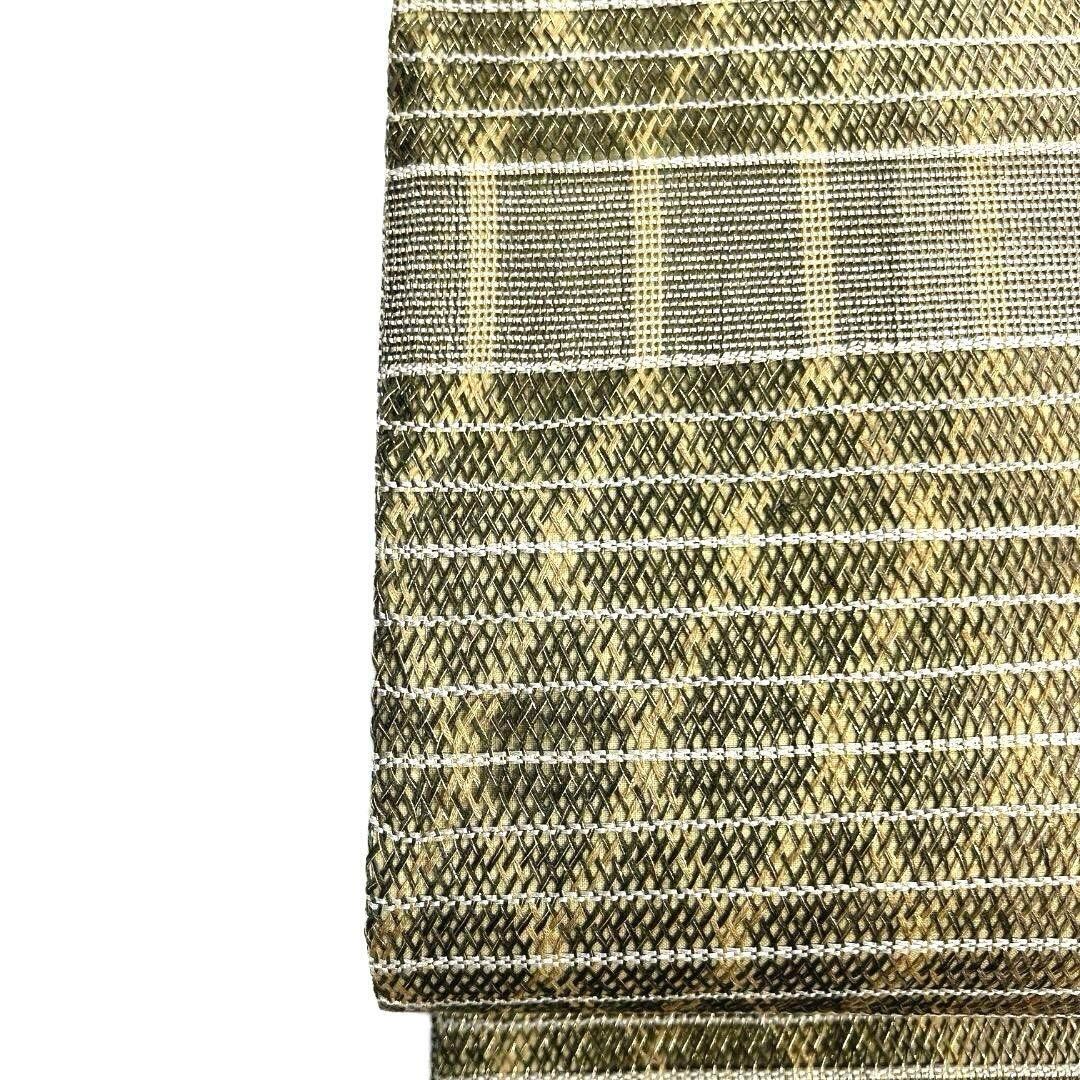 横縞や変わり菱模様に金糸が織り込まれたお洒落な一着です。