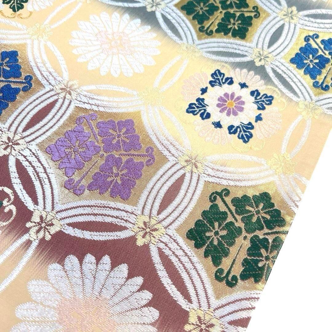 唐織で横段に菊花菱や花菱が織り出された袋帯です。