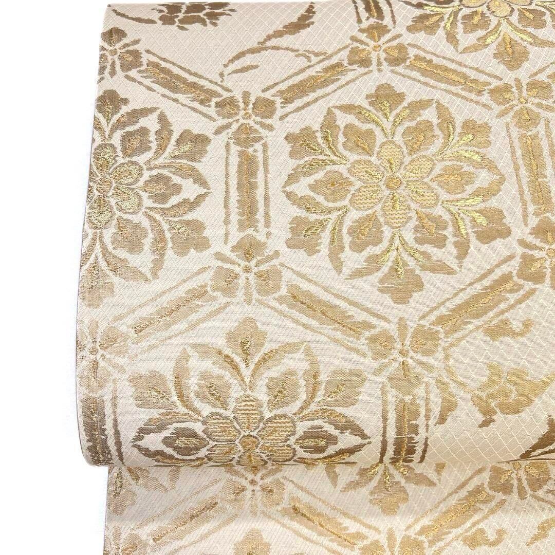 亀甲と華紋が金糸を交え織り出された袋帯です。
