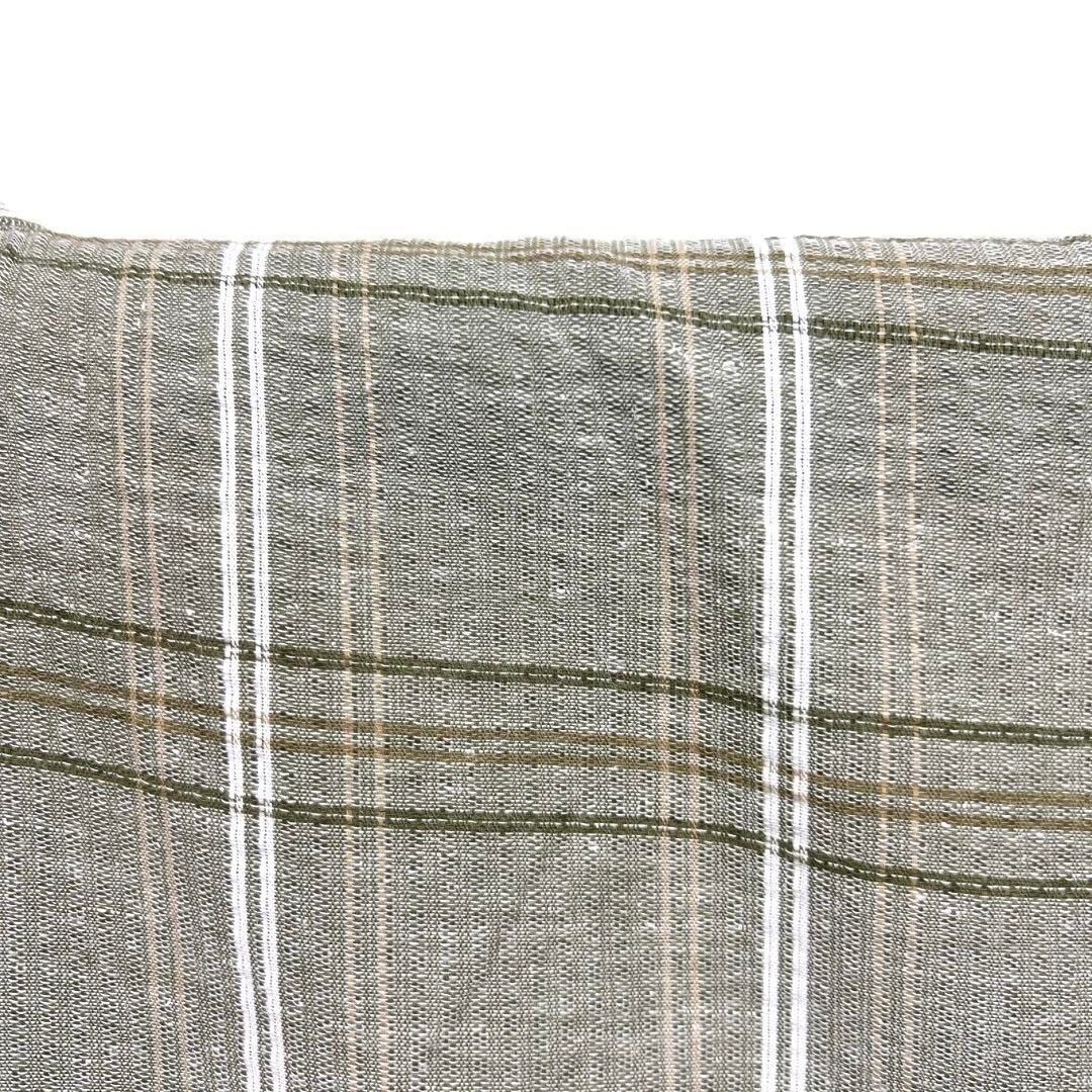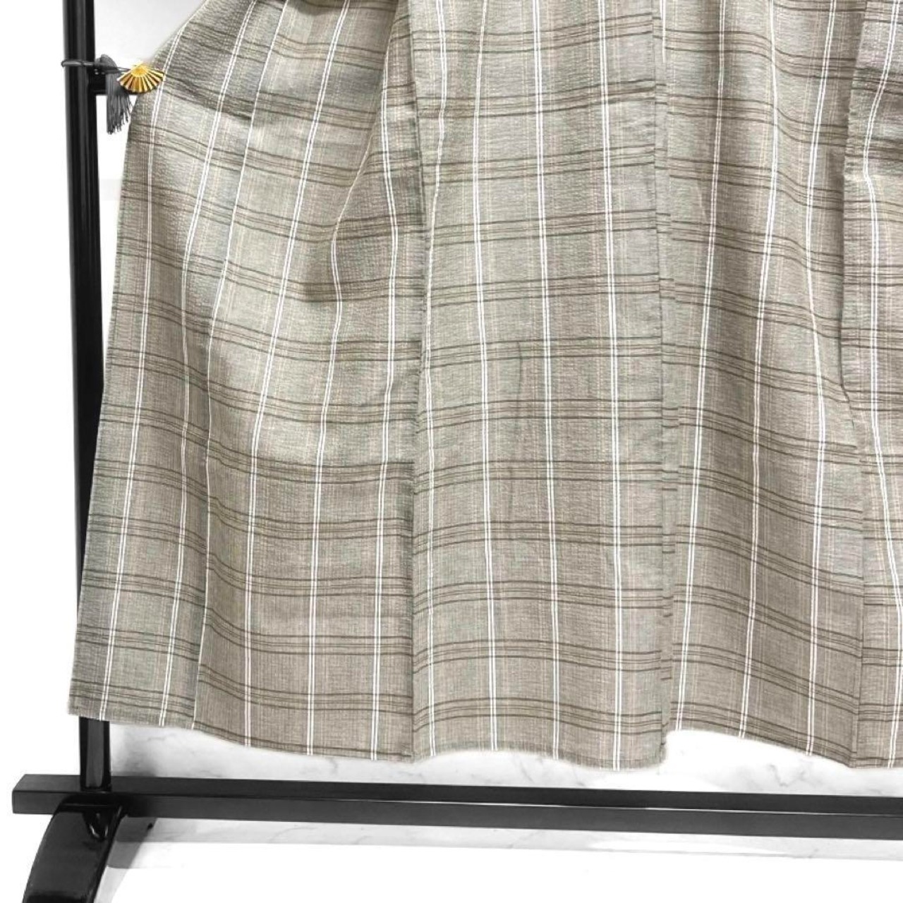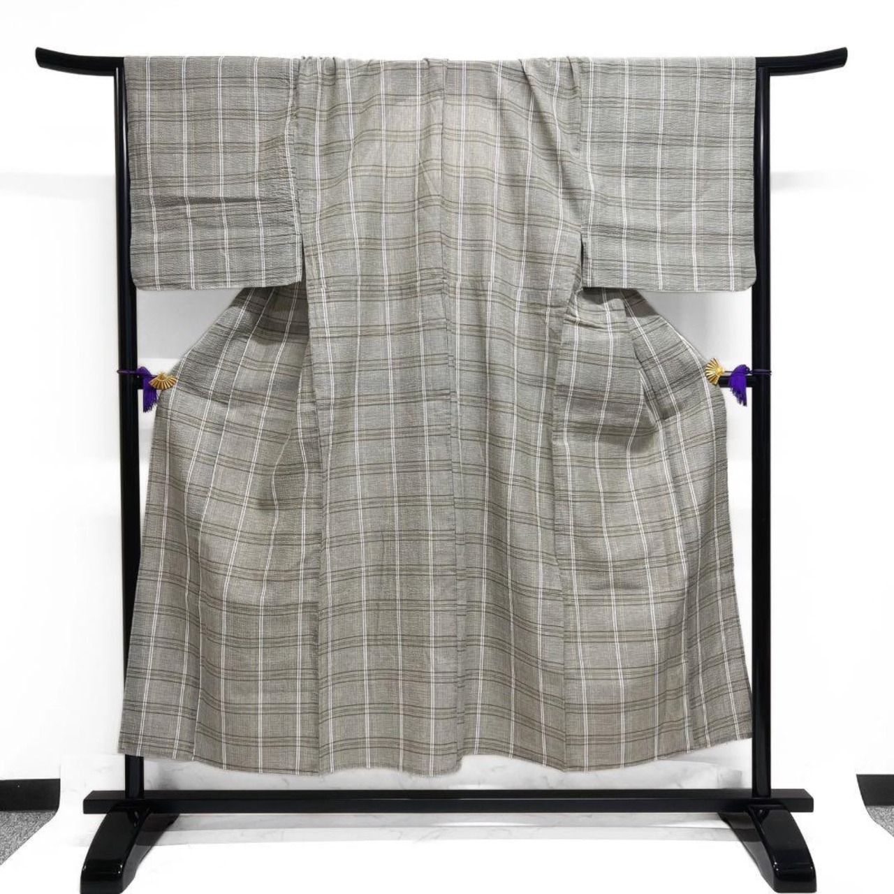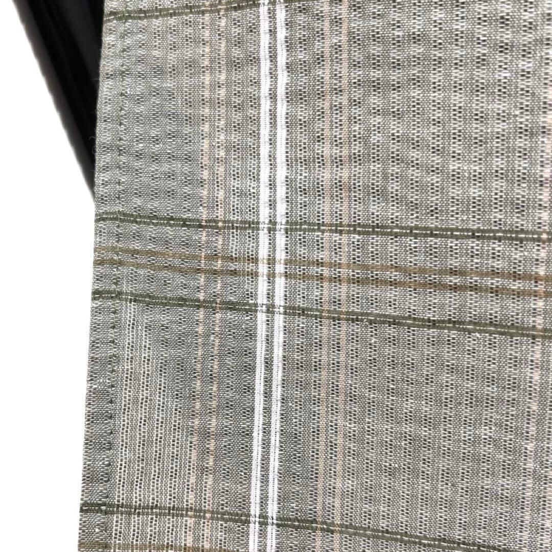 薄いくすみグリーンの地にチェック模様が織られたお洒落なデザインの一着です。