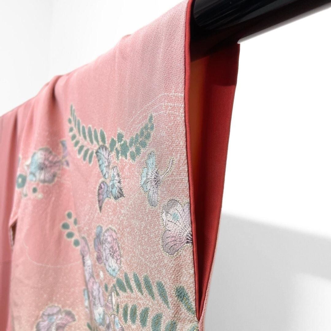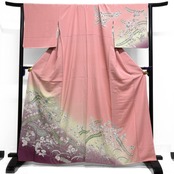 たたき染めやぼかしの繊細で美しい色使いに、細やかに描かれた夢幻辻ヶ花が華やかな1着です。