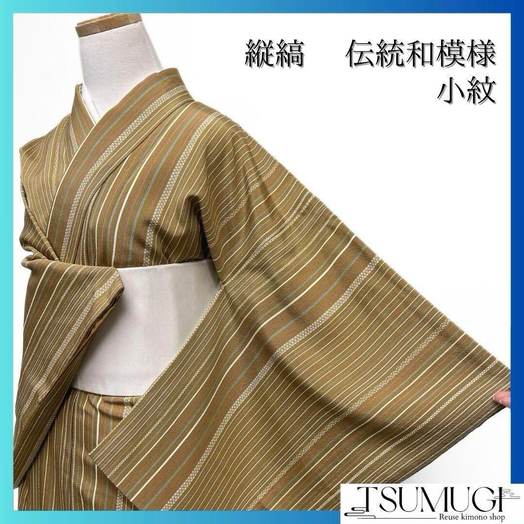 落ち着きのあるお色味に細やかな縦縞模様が美しい1着です。