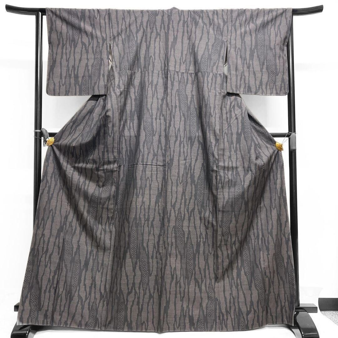 紬地の抽象模様や菱模様が織り出された小紋です。