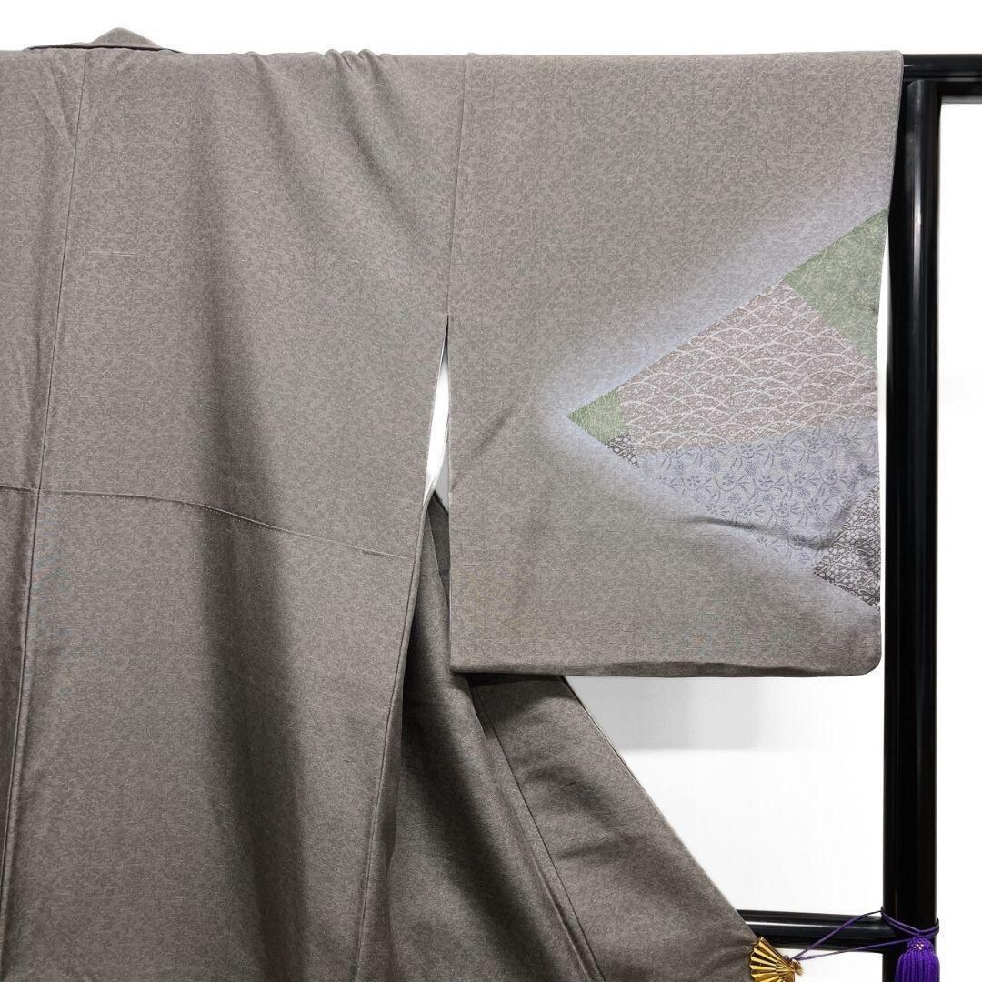 落ち着いたお色味と全体に細やかにデザインされた華紋模様が美しい一着です。