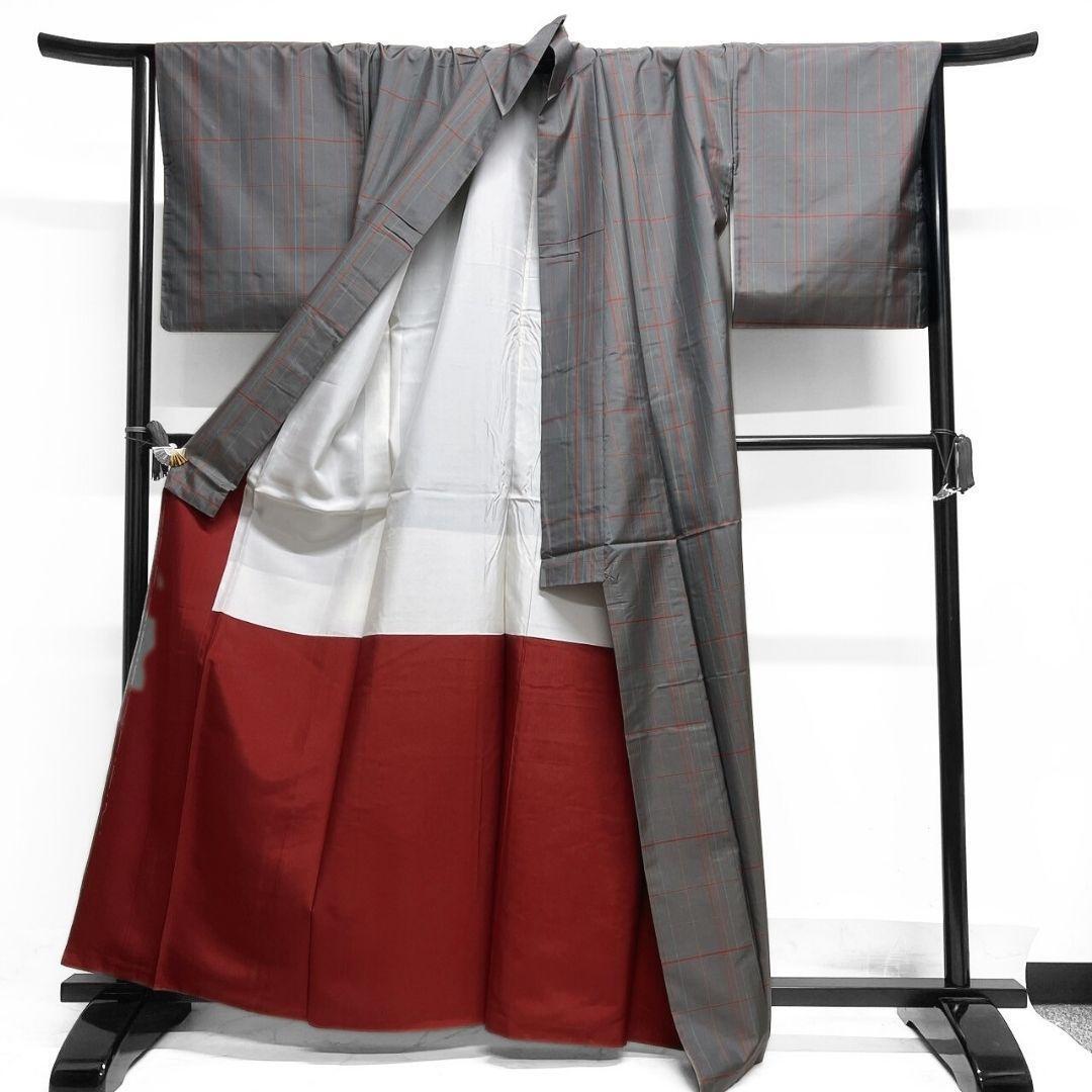 グレーカラーに淡いお色味のチェック模様がデザインされたお洒落な一着です。
