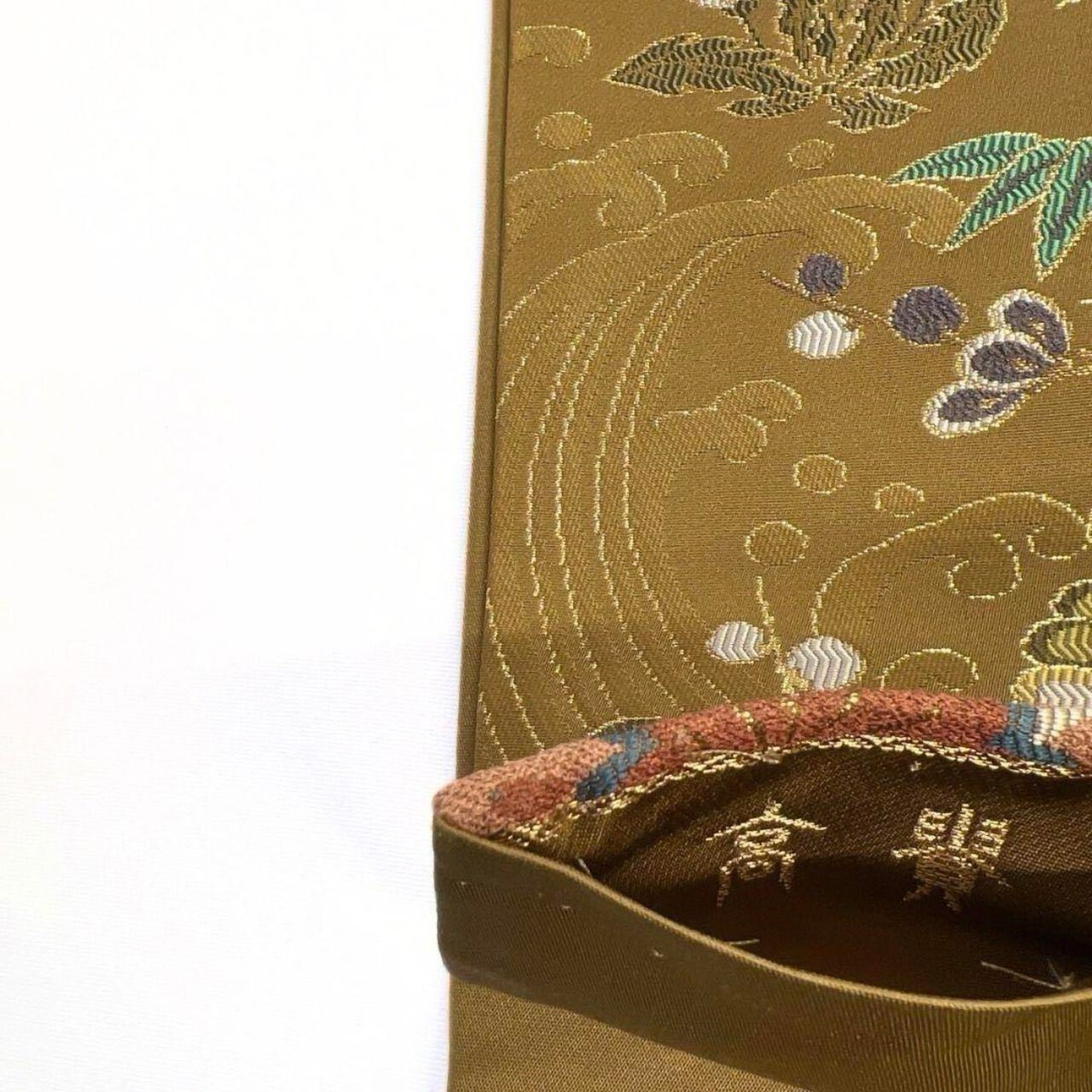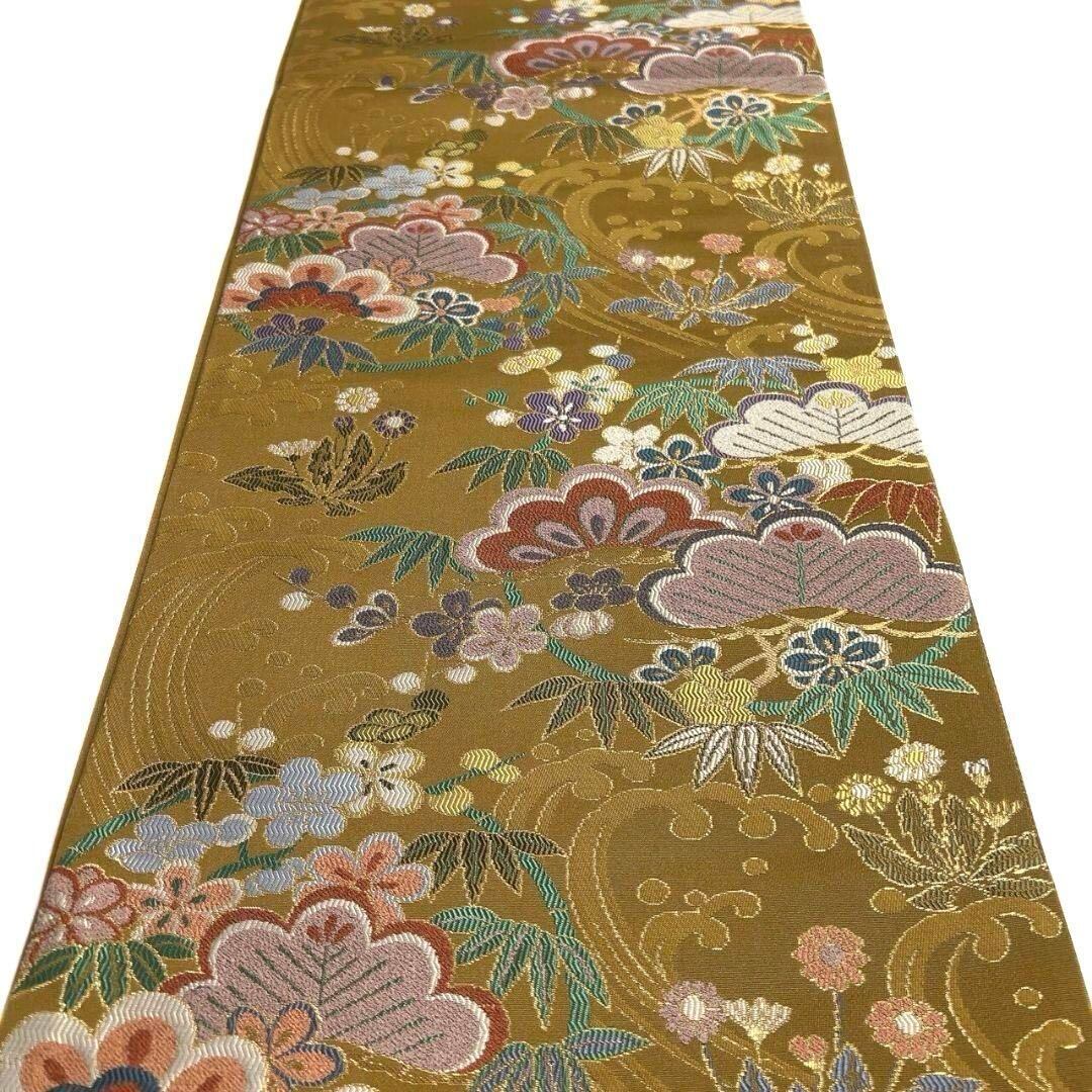 松竹梅を基調に波模様や花模様が織り出された袋帯です。