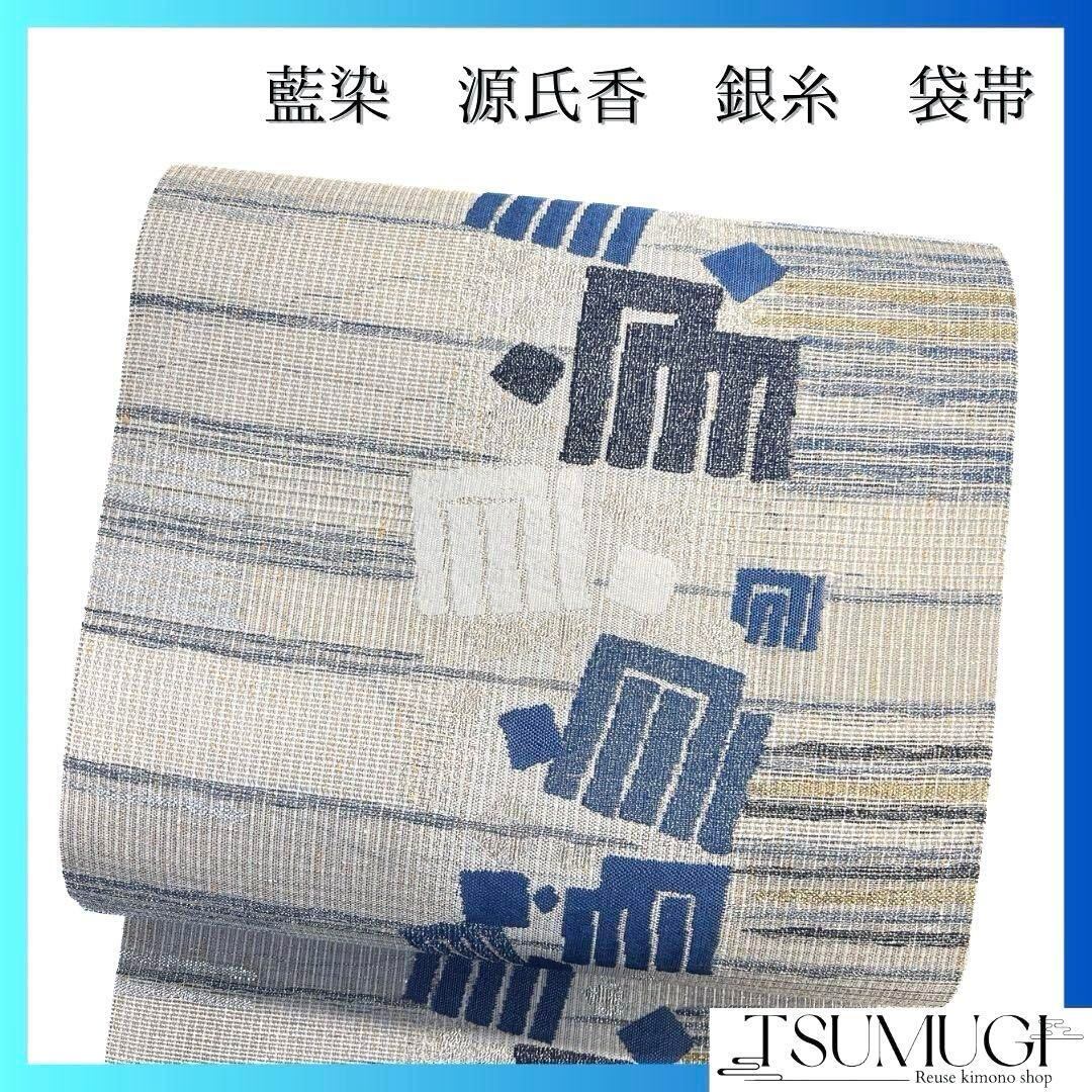 金糸や銀糸が細やかにおり交えられた、くすみブルーと白のお色味が粋な一着です。